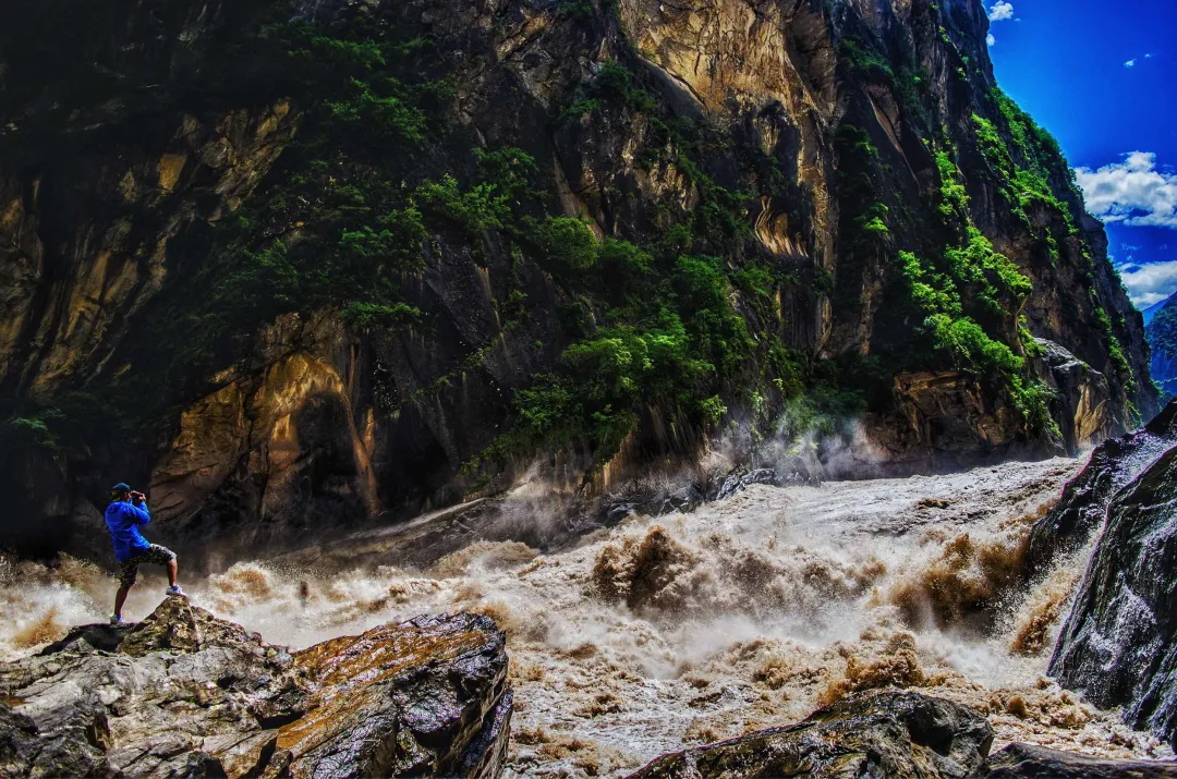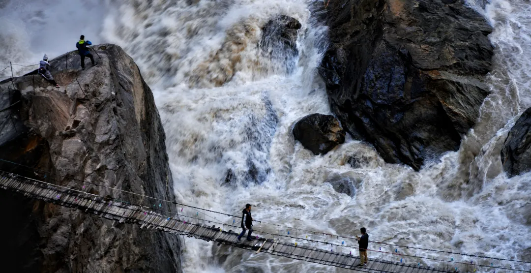 【下午】沿着张老师步道下行,来到水流湍急的江边,近距离感受金沙江水的怒吼,随后继续前行来到中虎跳未开发原始步道,这里依山壁而修、险峻不已,穿过一线天步道,继续上行,最后从核桃园位置出来,乘车前往下虎跳峡乘坐渡船过江前往纳西民族乡,同时欣赏沿途峡谷风光,晚上入住丽江。