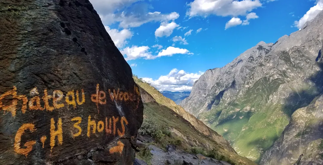 【下午】沿着高路步道继续前行,一路走过惊险的崖边步道,沿途尽是面朝玉龙雪山群峰,俯视雪山下的大峡谷,景色无比震撼,最后抵达本地湾入住今晚的客栈,天气好的情况下可以欣赏玉龙雪山的日落与夜晚的无尽星空。