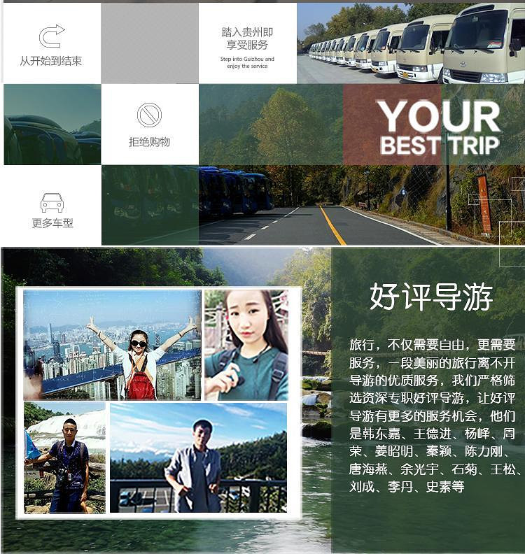 5.贵州地处云贵高原地区,山路较多,请穿轻便、柔软休闲鞋子;贵州素有天无三日晴之说,天气多雨,请自备雨伞;少数民族寄居地,请遵循当地风俗。