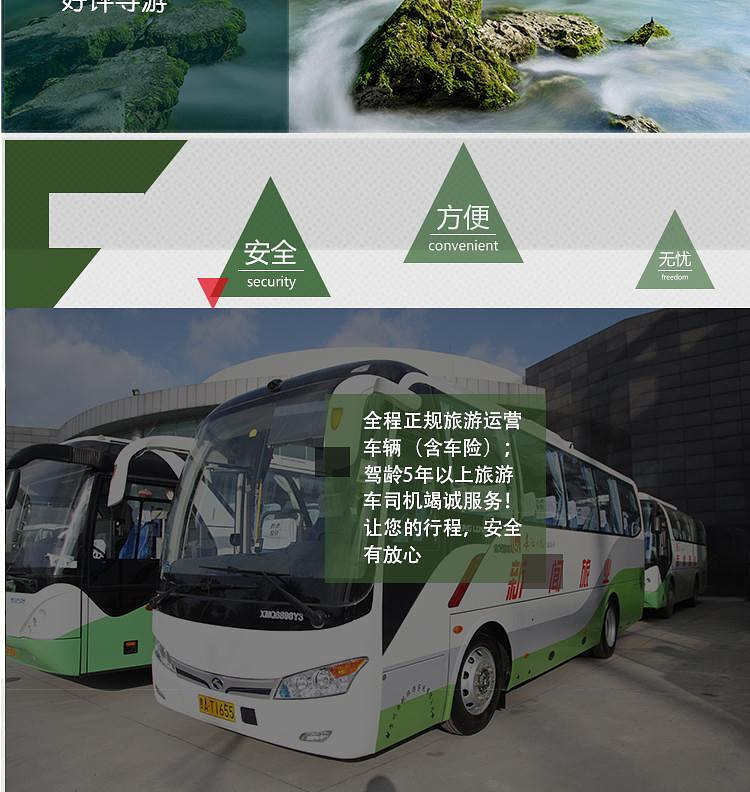 ● 交通:正规空调旅游车,保证每人一正座;头等舱一环内含接属于赠送项目,如不享受,无退费;